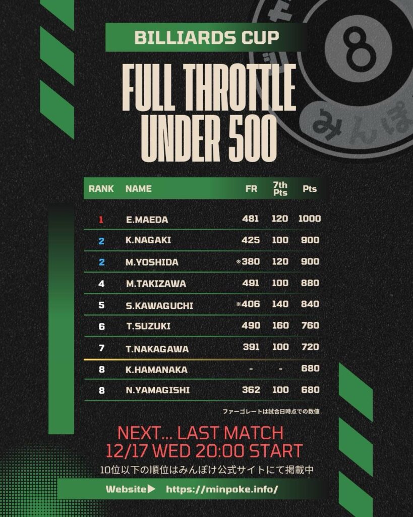BC級戦の位置付けとなる年間ツアー戦「フルスロットルカップ」の第7戦の結果です。