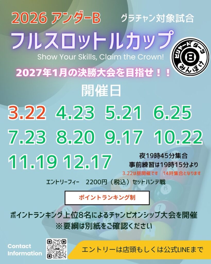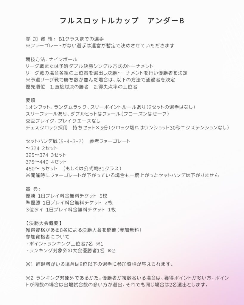 フルスロットルCUPアンダーB日程変更・要項のお知らせ