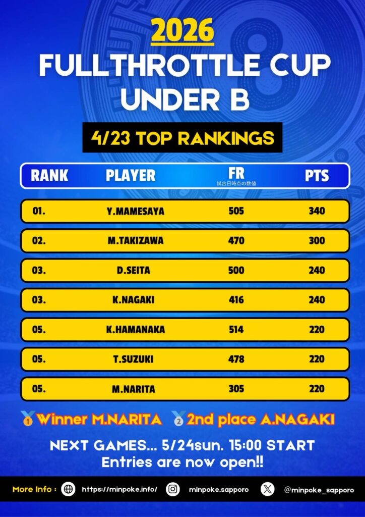 予選ダブルイリミネーション、ベスト8から決勝トーナメントを行いました。